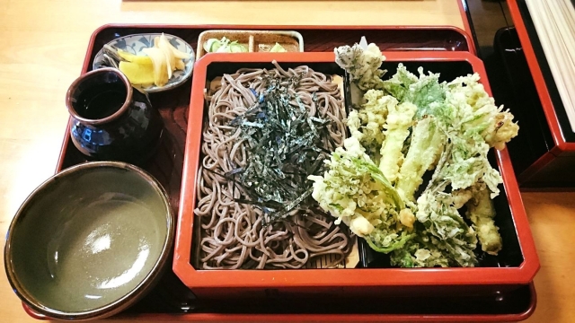揚げたて山菜天ぷらを添えた天ぷらそばは、香ばしさとそばの風味が絶妙に調和する贅沢な一杯です。